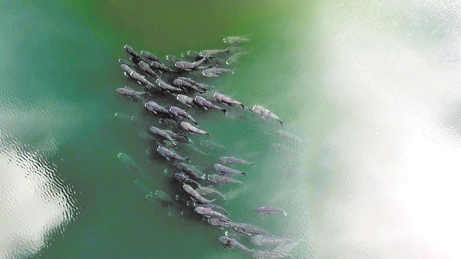 我-扫描二维码观看视频 10月12日,湖北鹤峰县走马镇江平河上,出现成群的鱼群。它们时而排列成“一”字,时而排列成“人”字,在碧绿的水体中畅游,构成一幅灵动的生态画卷。 摄影:楚天都市报 极目新闻 记者 李波 通讯员 项申荣 项青山